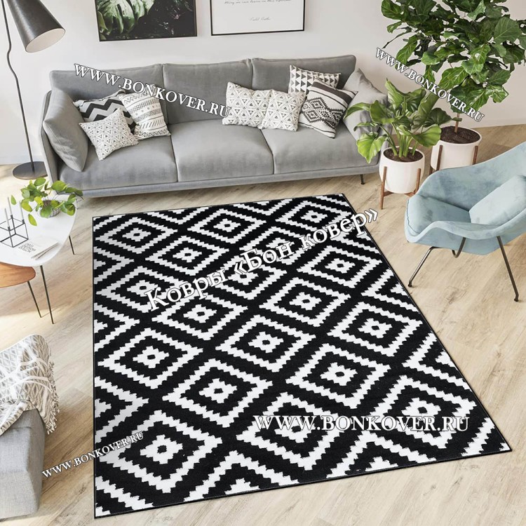 Ковер скандинавский черно-белый станет идеальным дополнением интерьера, оформленного в современном или классическом стиле. Мягкое, но прочное, ковровое изделие обеспечивает тепло- и шумоизоляцию, отличается длительным периодом эксплуатации, надежностью, экологичностью и высокой износостойкостью, является отличной гарантией от повышенной влажности в помещении и утеплителем для холодного пола. Благодаря качеству материалов, ковер не деформируется, сохраняет первоначальный вид под тяжестью предметов мебели. За его поверхностью легко ухаживать.