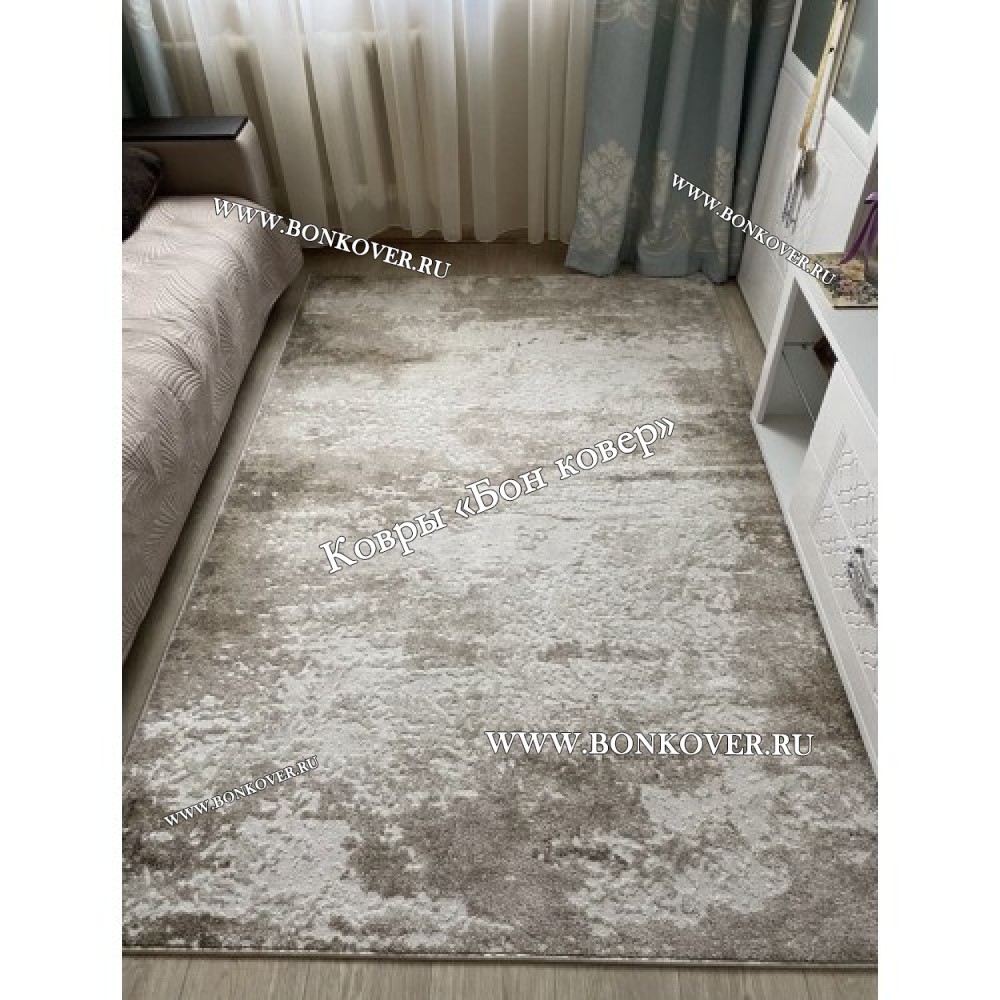 Ковер в гостиную дизайн 142 Бежевый станет блестящим дополнением интерьера, оформленного в современном или классическом стиле. Мягкое, но прочное, ковровое изделие обеспечивает тепло- и шумоизоляцию, отличается длительным периодом эксплуатации, пожаробезопасностью, экологичностью и высокой износостойкостью, является отличным барьером от повышенной влажности в помещении и утеплителем для холодного пола. Благодаря качеству материалов, ковер не деформируется, сохраняет форму под тяжестью предметов мебели. За его поверхностью легко ухаживать.