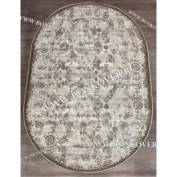 Ковер в гостиную дизайн 20 Бежево-коричневый Овал new станет стильным преображением жилого помещения, подчеркивая высокий статус хозяина.
